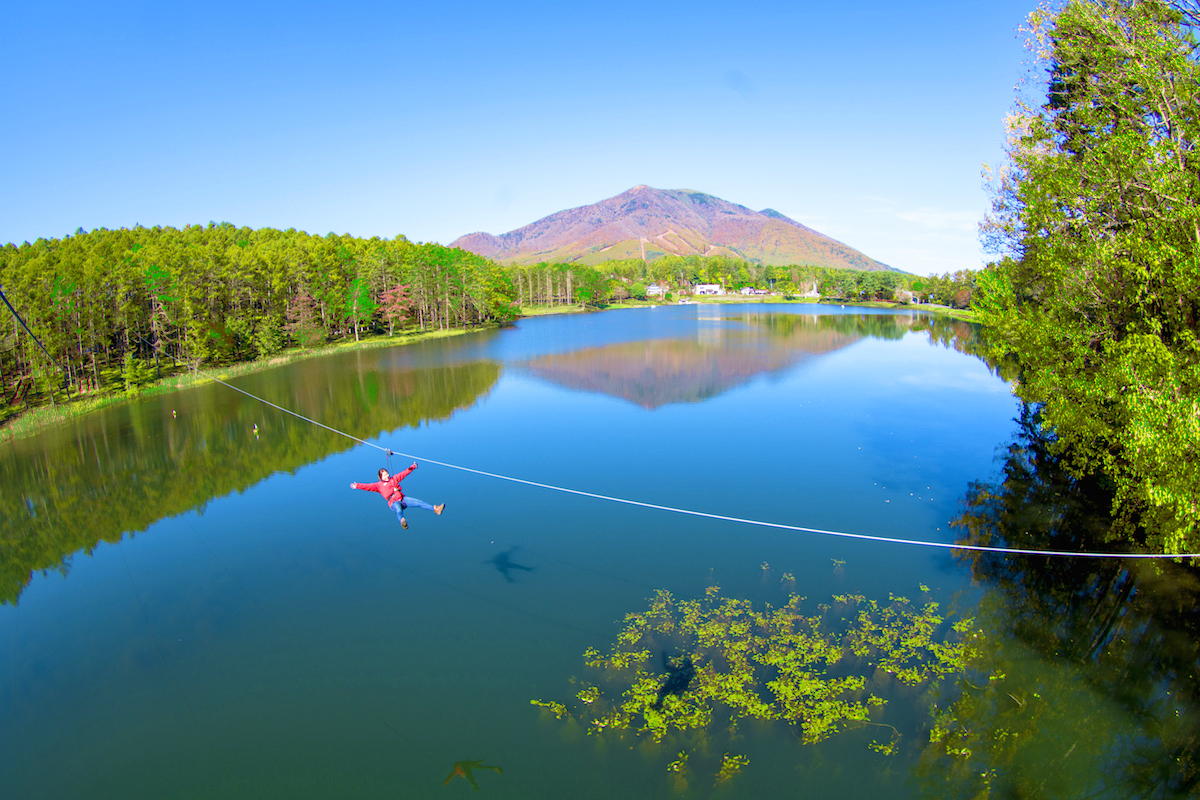飯綱高原の大座法師池の湖畔にあり、この大座法師池の上空を滑る150m越えの4本のジップスライドが大人気。その他、「トランポリン」や弾の出ないレーザーで撃ち合うサバイバルゲーム「レーザータグ」といったご家族やグループで楽しめるサブコンテンツもご用意しております。