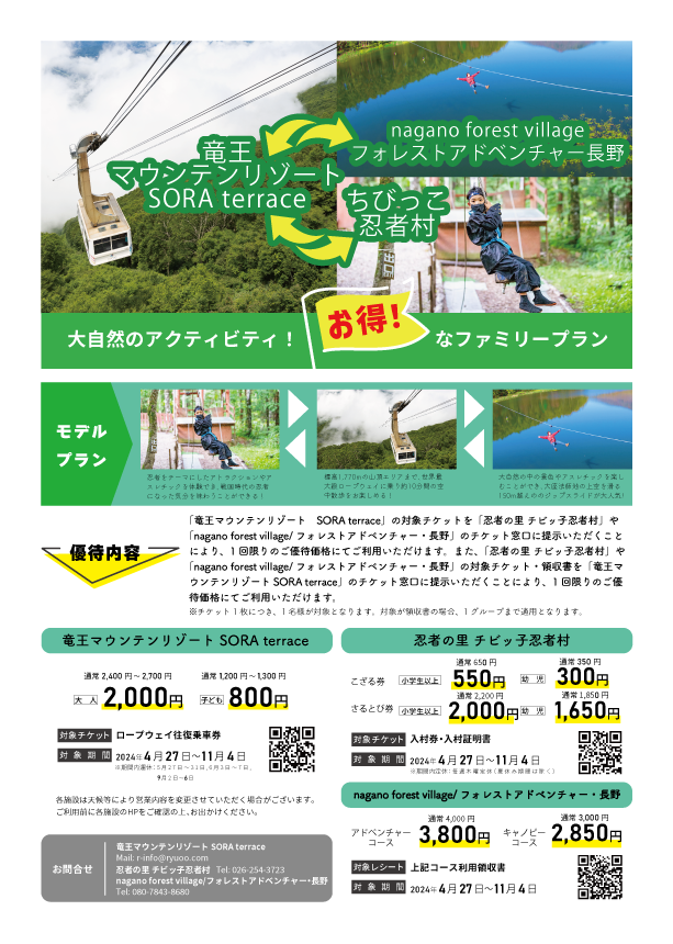 長野の大自然でアクティビティ&ロープウェイをお楽しみください♪