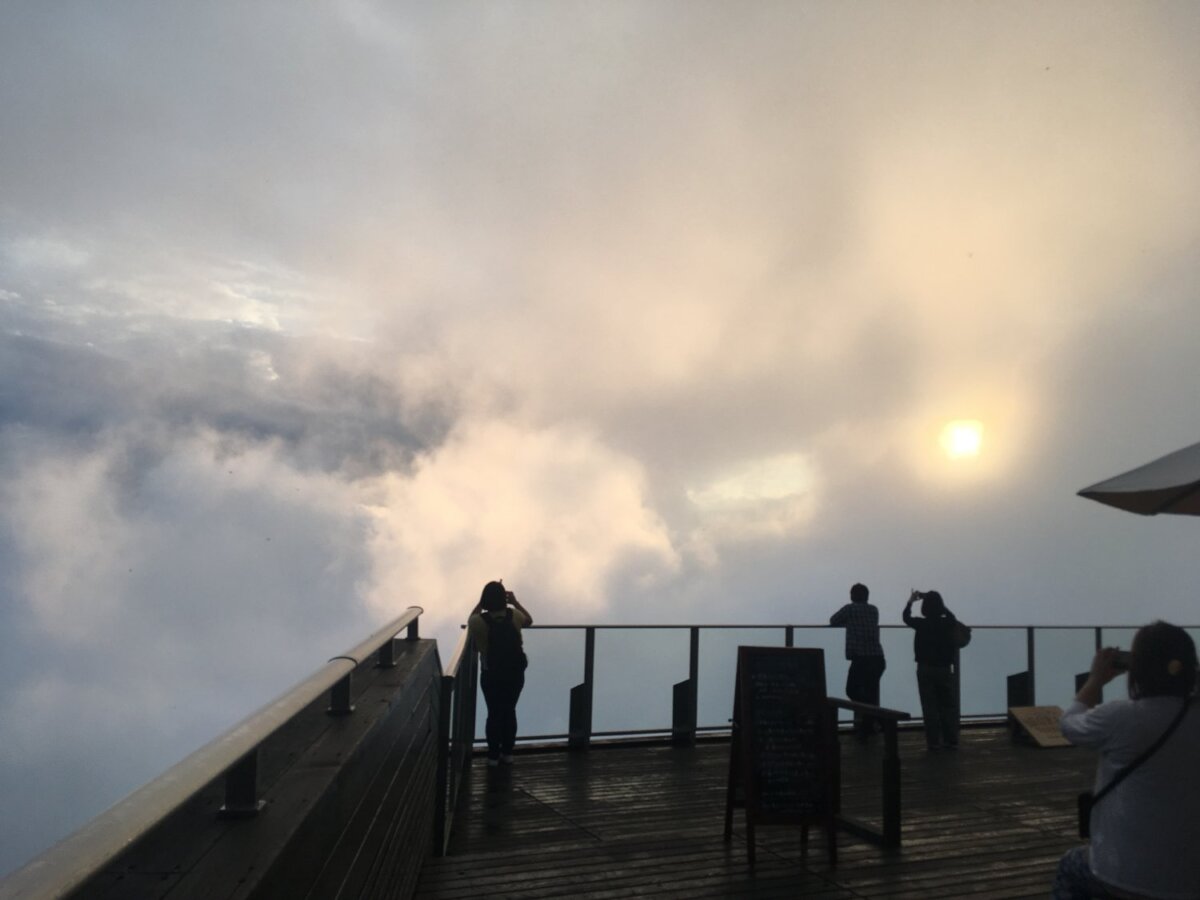 山の天気はとても変わりやすい為、山頂に霧や雲がかかっているときでも、雲の向こう側から日差しが見えた時は、少し後に雲海になるパターンがあります。SORA terraceで雲海が見られず「もう帰ろうかな」と思ったときに、上空から日が差し込み始めたらもしかするとその少し後に雲海が見られるかもしれません。