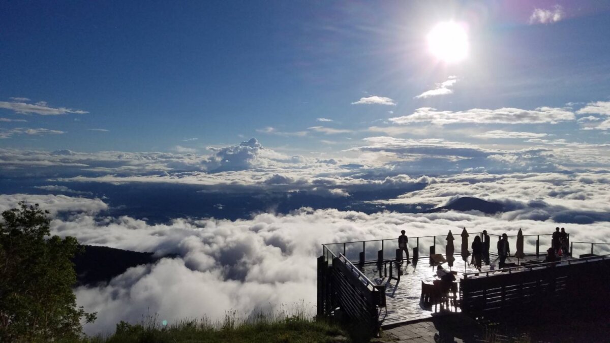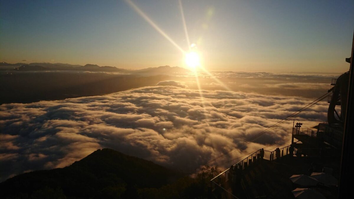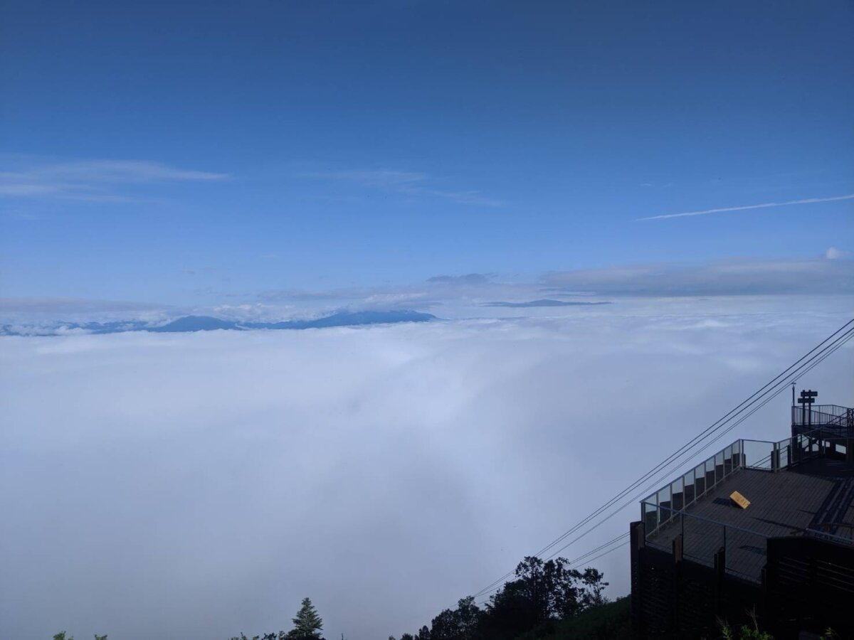 2019年の夏は梅雨が長かったですが、雨の影響で雲の発生率も高く雲海を数多く見ることができました。実際にSORA terraceで撮影されたこちらの雲海は、雨上がりに発生したもの。標高1,770mという高さから、山麓で雨が降っていても山頂では晴れていることもあります。雨の後に見るカラッと晴れた青空と雲海はとても綺麗です。
