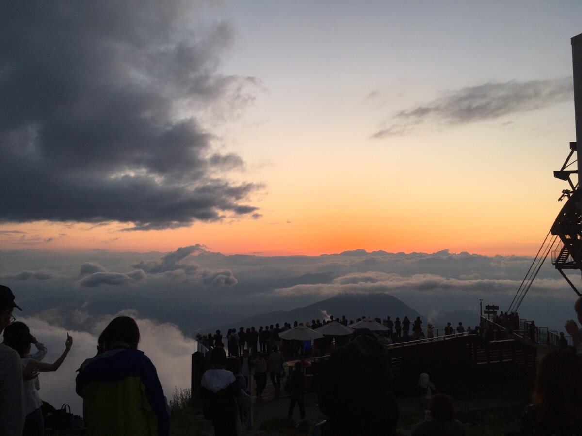 山頂の気温が下がってくる朝や夕方の時間帯に、雲の標高も一緒に下がり雲海になるパターンが多いです。