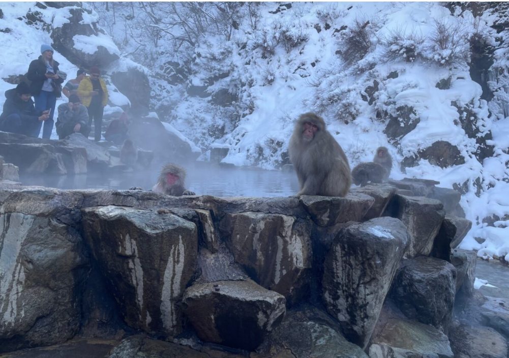 午後はバスと徒歩を組み合わせて、世界的に有名な「地獄谷野猿公苑」を訪れます。ここでは、厳しい冬の寒さを凌ぐために温泉に浸かる野生のニホンザルを間近に観察できます。サルの愛らしい表情や群れの生活を間近で見られる体験は、海外からも多くの観光客が訪れる長野観光の目玉です。