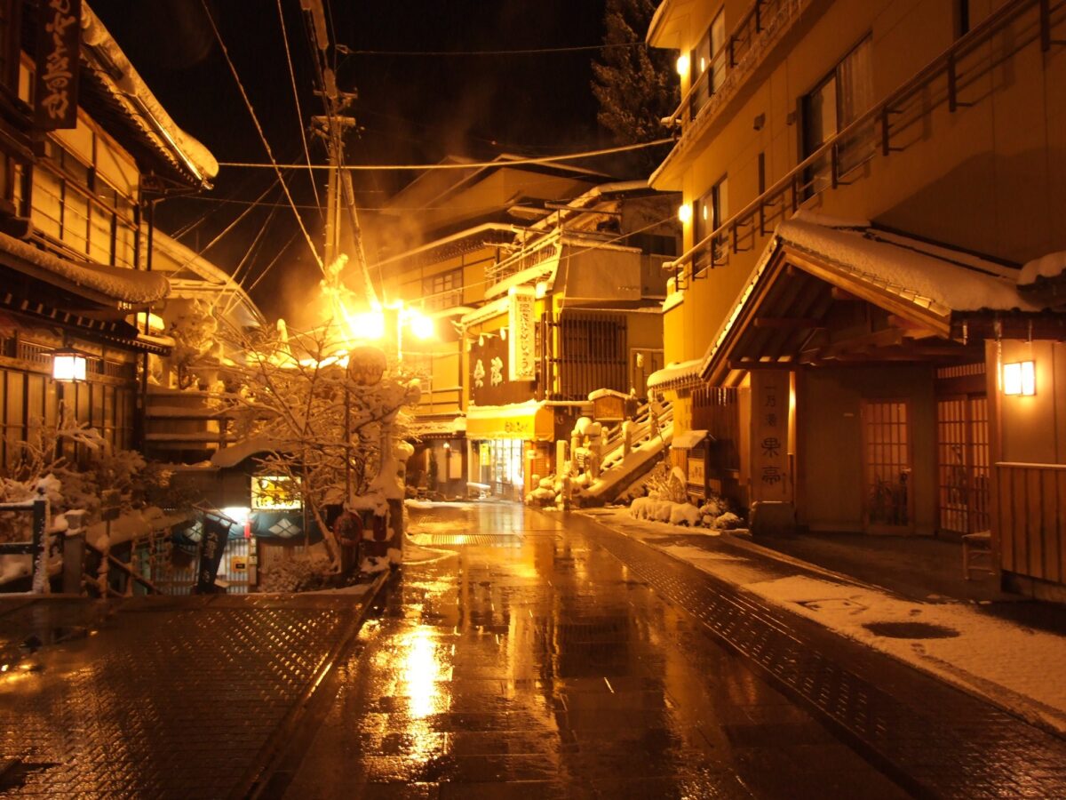 1日の締めくくりには、歴史ある湯田中渋温泉郷で宿泊します。石畳が続く風情豊かな街並みを浴衣姿で歩けば、古き良き日本の温泉情緒に浸れます。特に渋温泉にある「金具屋」の歴史的建築物は、夜になるとライトアップされ、その幻想的な佇まいはまるで物語の世界に入り込んだかのような美しさです。共同浴場を巡りながら、北信州の豊かな源泉で旅の疲れを心ゆくまで解きほぐしてください。
