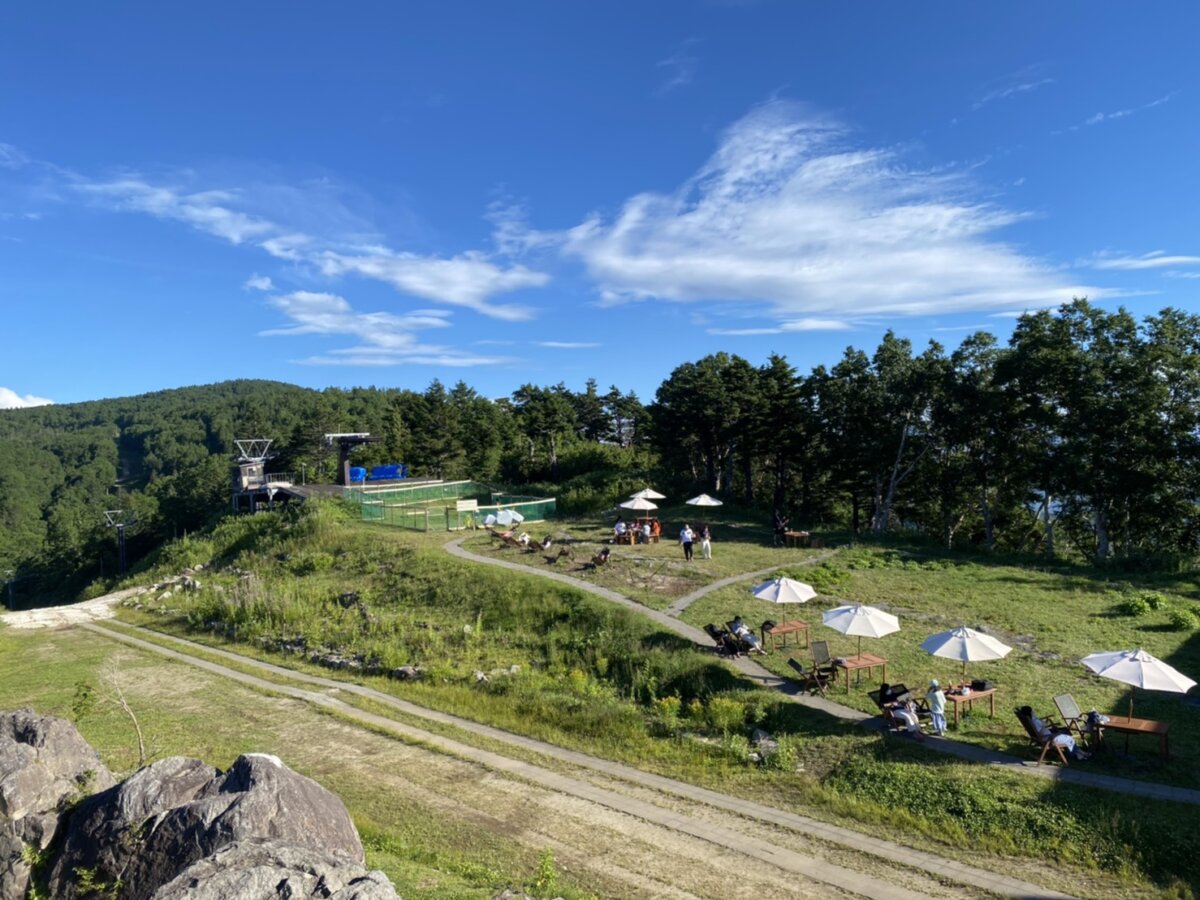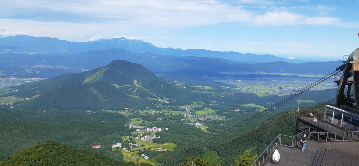 8分間の空中散歩の後は、まずはSORA terraceで絶景を楽しんでください!妙高山をはじめとした北信五岳や北アルプス、遠くには佐渡島が見える一大パノラマが同じ目線で望めます。テラスの上には雲形のオブジェが設置されており、景色と一緒に写真撮影をするのもオススメ!