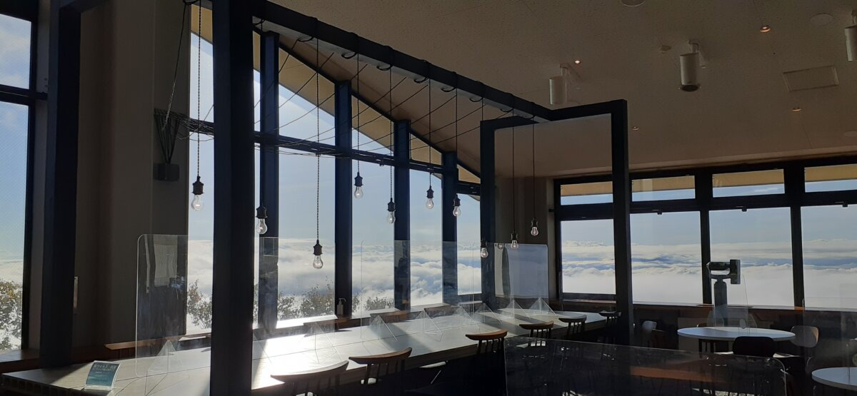 SORA terrace cafe は窓が大きくて、外の様子を眺めるのにもバッチリ。ゆったりお茶をしながら雲海の発生を待ちましょう!