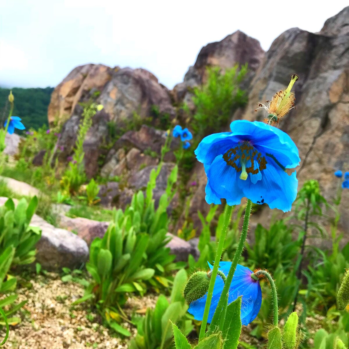 画像のお花は、幻の花と言われる「ヒマラヤンブルーポピー」。本来は標高3,000~5,000mの高地に自生する花で、暑さに弱いため、栽培は簡単ではありません。神秘的な色は、一度見ると忘れられません!