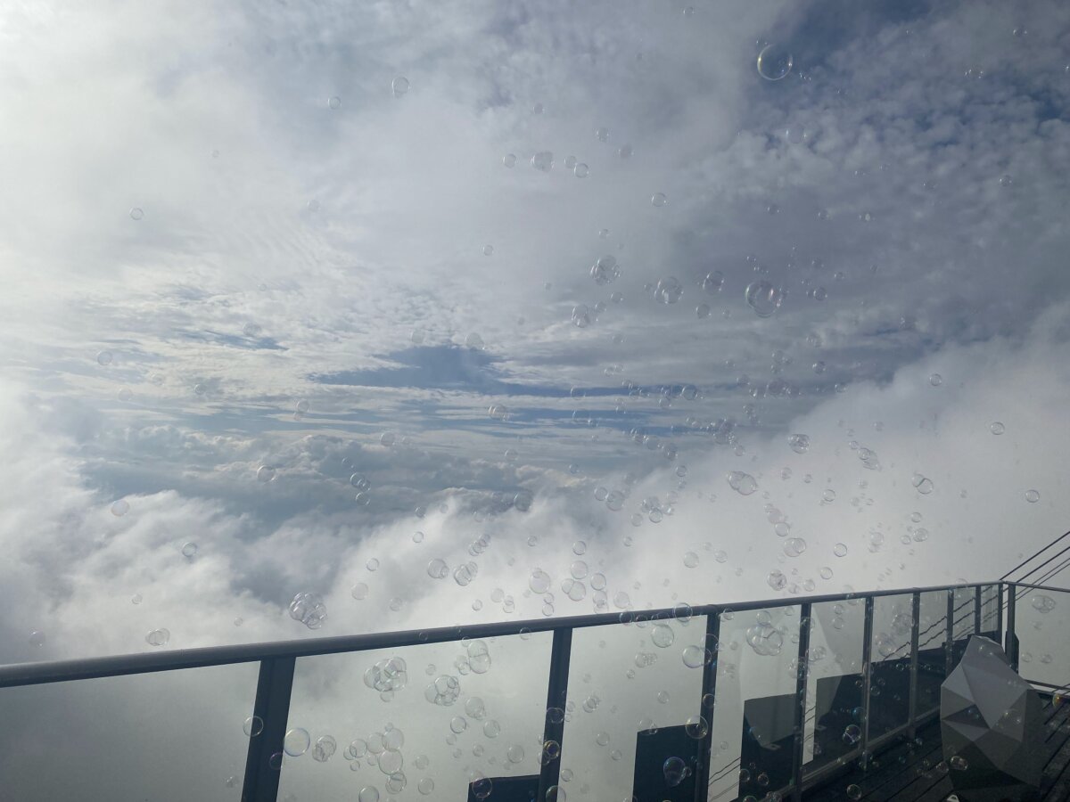 標高1,770mのSORAterrace上空を無数のシャボン玉が舞い、幻想的な世界が広がります。「絶景+シャボン玉」は写真映え間違いナシ。