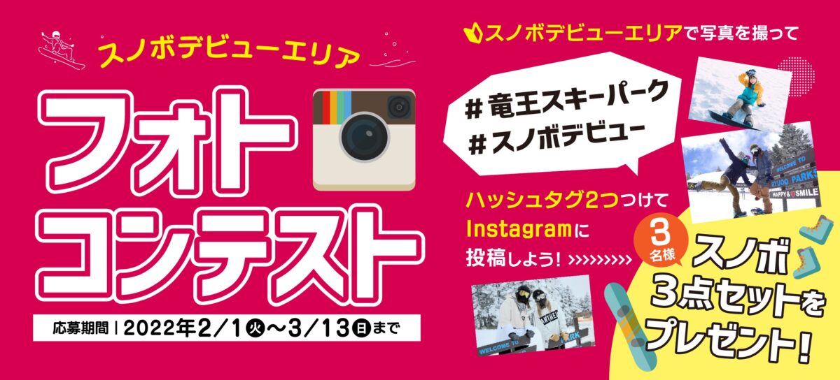 スノボデビューエリアで撮影した写真を、ハッシュタグをつけてInstagramにUP!スノボ3点セットが当たるかも?!