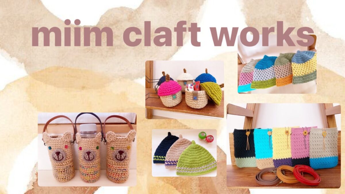 【紹介文】楽しい色合わせの編み物雑貨⭐︎肌触りのよいcotton100%の手編み帽子、麻紐のバッグや小物たち♡