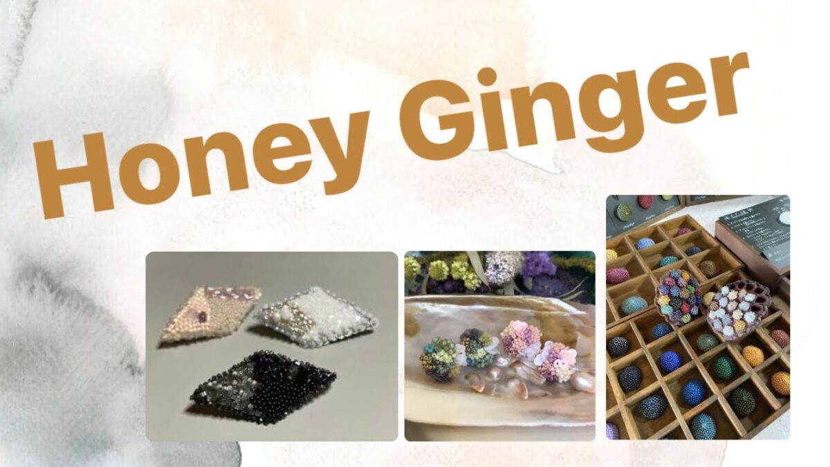 【紹介文】Honey Gingerのビーズクロッシェは国内外のビーズ、ヴィンテージビーズ、淡水パール等を使って、一粒一粒、丁寧に編んでいます。光の当たり方や角度でいろとりどりに印象が変わるのが魅力的。またビーズ刺繍のアクセサリーはオートクチュールの技術をいかして、繊細な中にも華やかさを感じられる作品になっております。