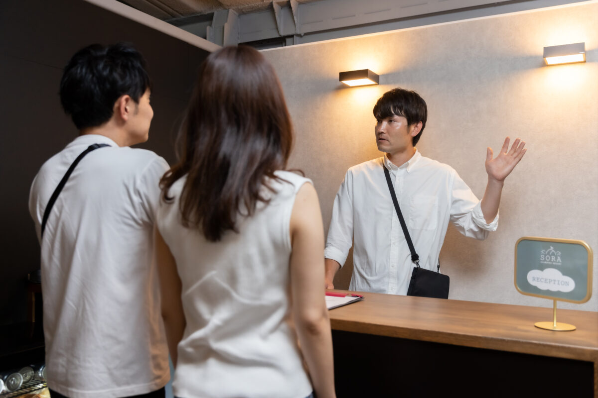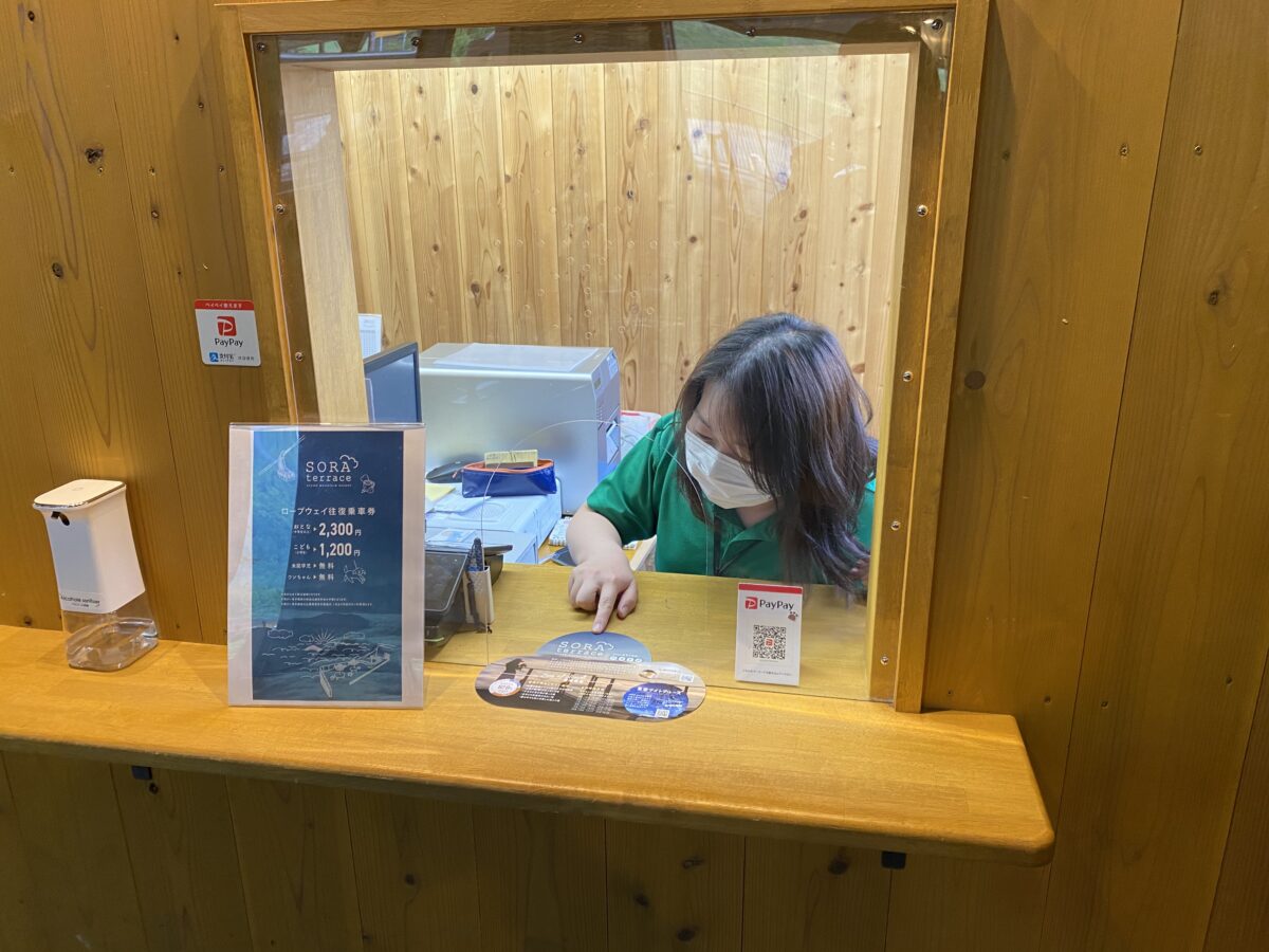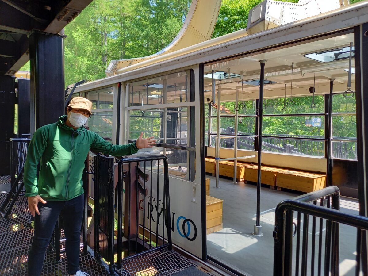 ロープウェイ乗降車の案内やチケットもぎりなど。