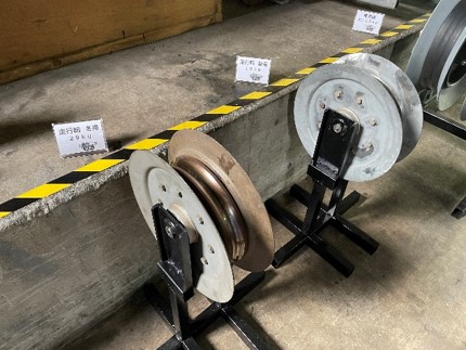 ロープウェイについている重さ19㎏の車輪やレールの一部を実際に触ることもできます!