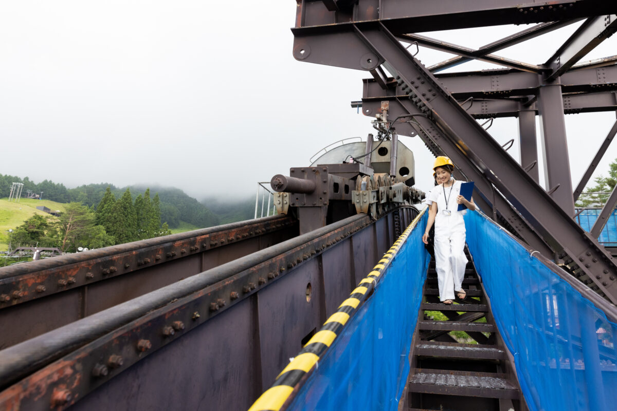 ロープウェイ走行部の点検台や運転室、世界最大級ならではの125tの重錘(じゅうすい)の見学など、機械好きにはたまらない内容が目白押し!