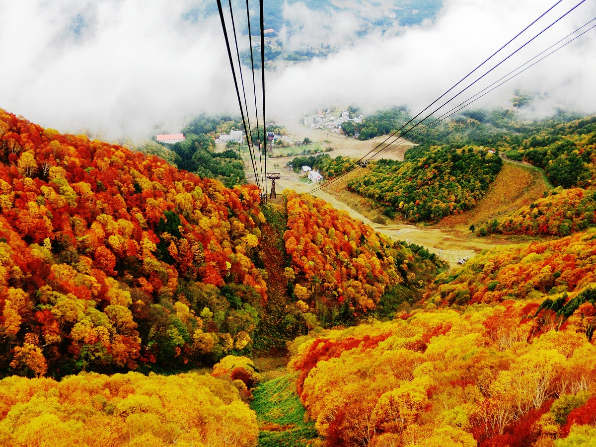 9月下旬~10月下旬は紅葉がおすすめな時期。ロープウェイから見える山々が色付き、圧巻の光景をご覧いただけます。