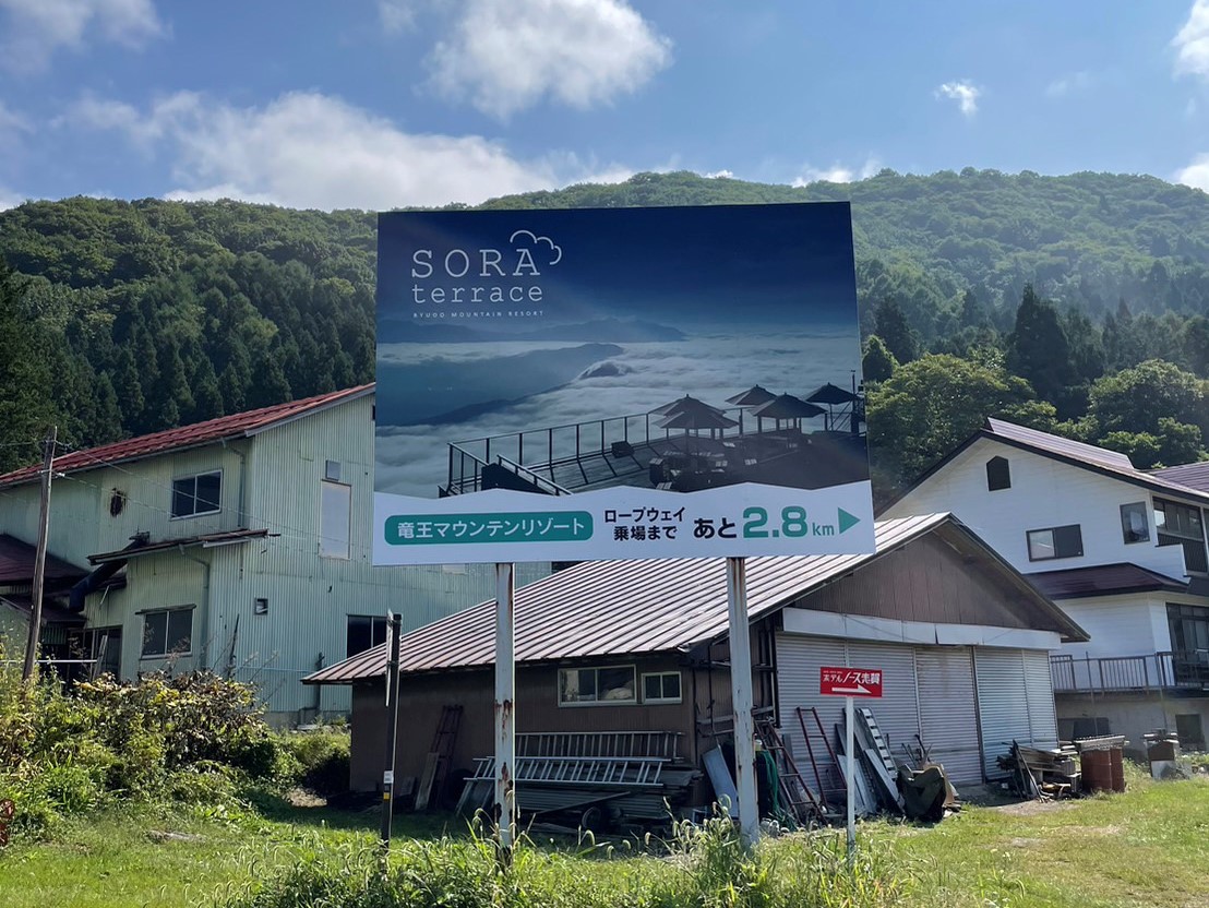 カーナビなどで「竜王マウンテンリゾート」や「SORA terrace」と検索していただくと標高1,770mの山頂エリアが表示されますが、要注意!