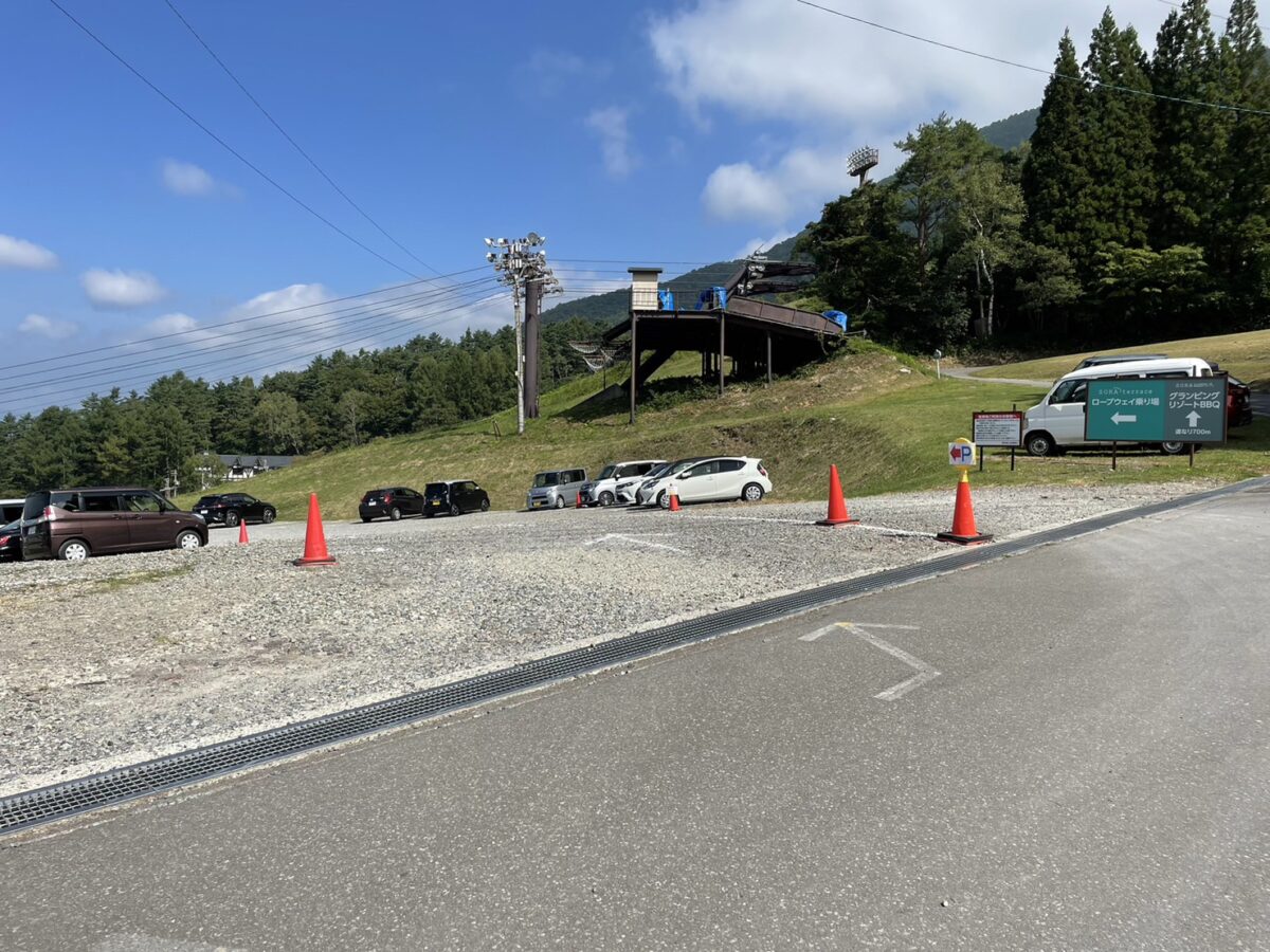 グリーンシーズンはロープウェイ乗場のすぐ横に駐車場がございます。