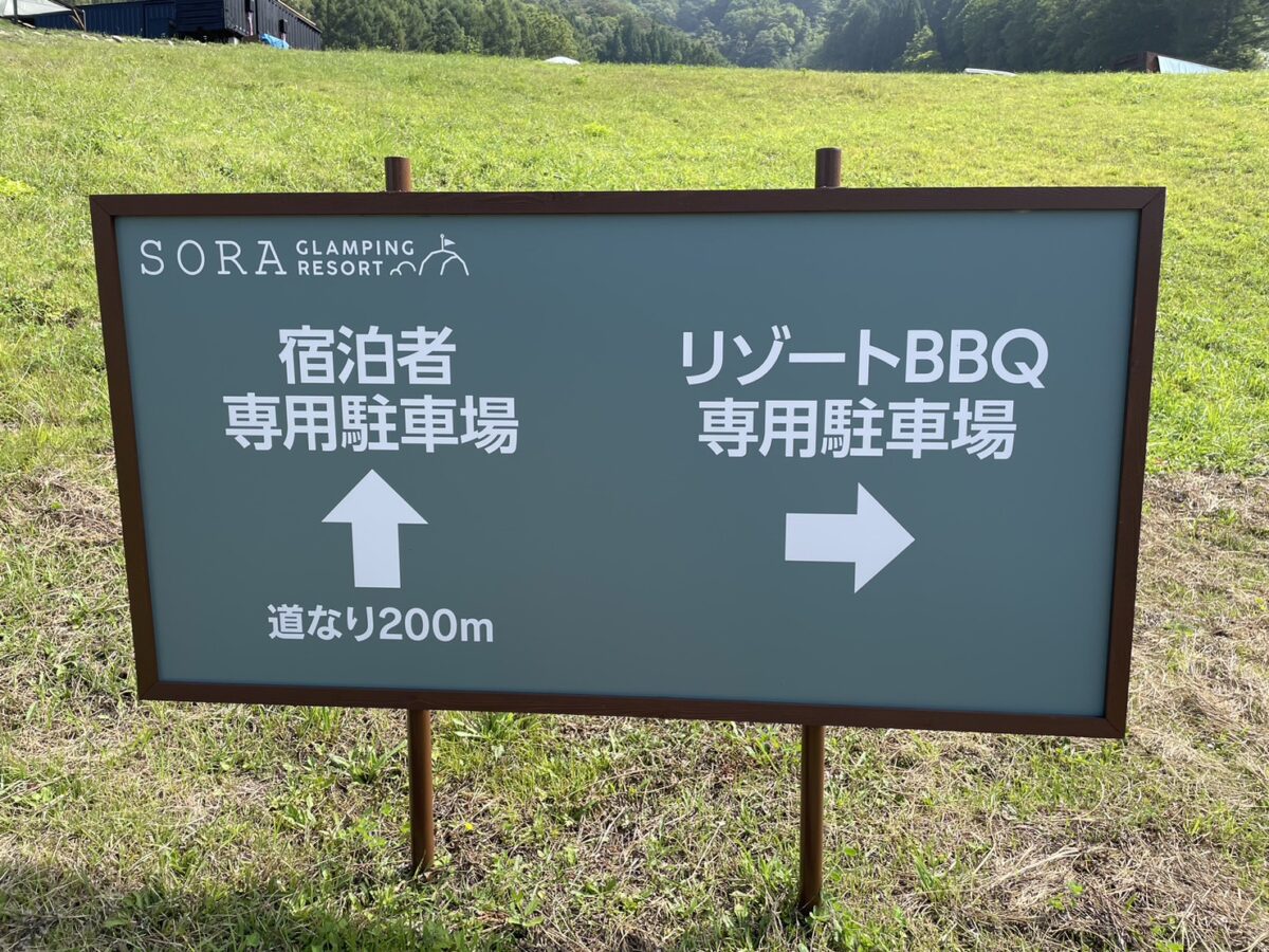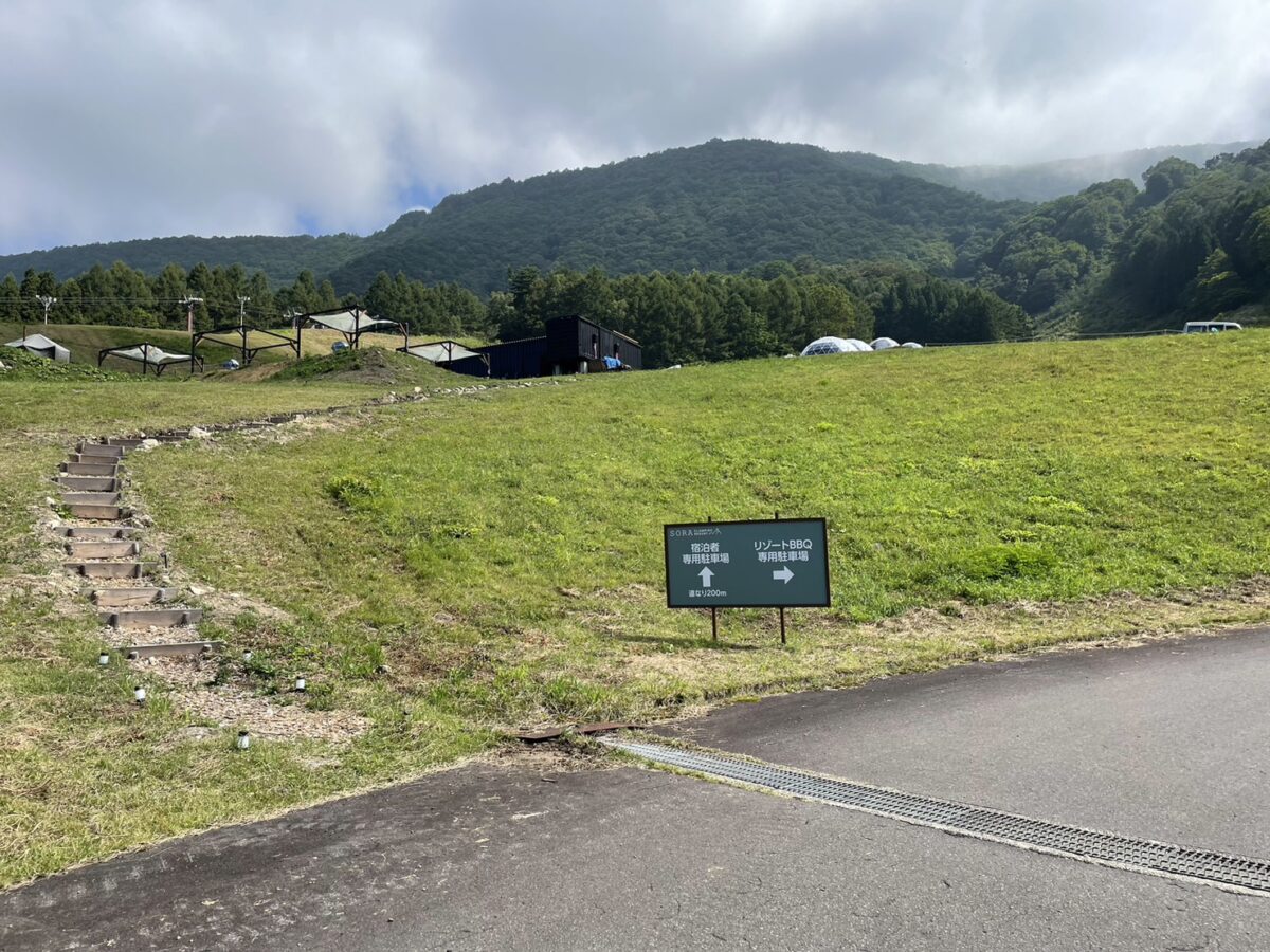 「ソラグランピングリゾート」をご利用のお客様は更に200m道なりに進むと駐車場がございます。
