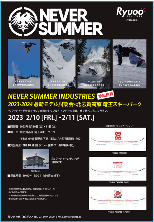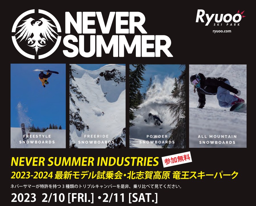 今シーズンもNEVER SUMMER INDUSTRIESを竜王スキーパークで開催します!!