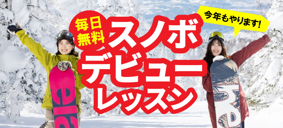 【スノボデビュー日本一宣言】の竜王スキーパークでは、初心者向け無料デビューレッスンを毎日開催しています!