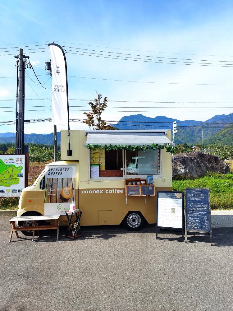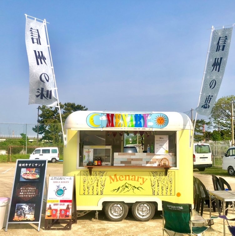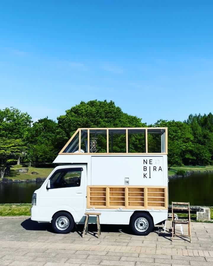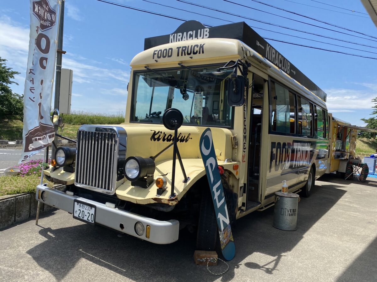 ブルーグリーンのアースカラーキッチンカーが目印!