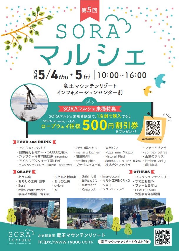 SORAマルシェ出店店舗、1店舗で購入すると当日~GW終了まで使用できる「ロープウェイ往復500円割引券」をプレゼント!