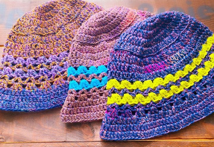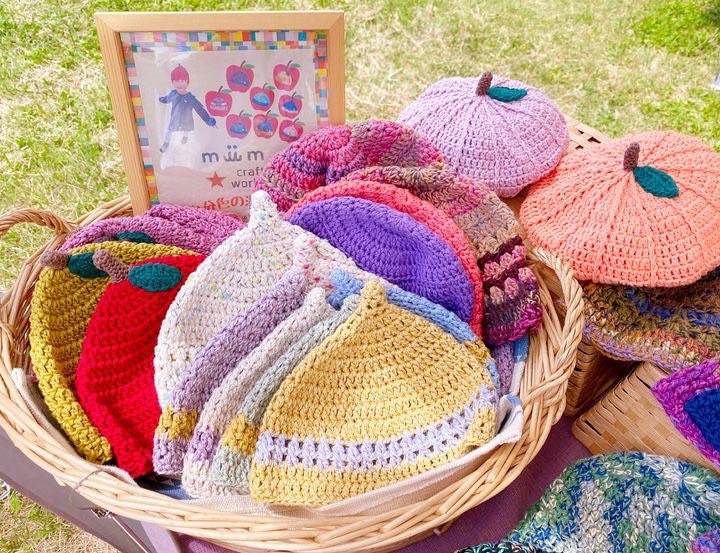 【販売商品】夏用コットン糸やヘンプ素材を編み込んだ、彩合わせの手編み帽子、麻紐の手編み雑貨など