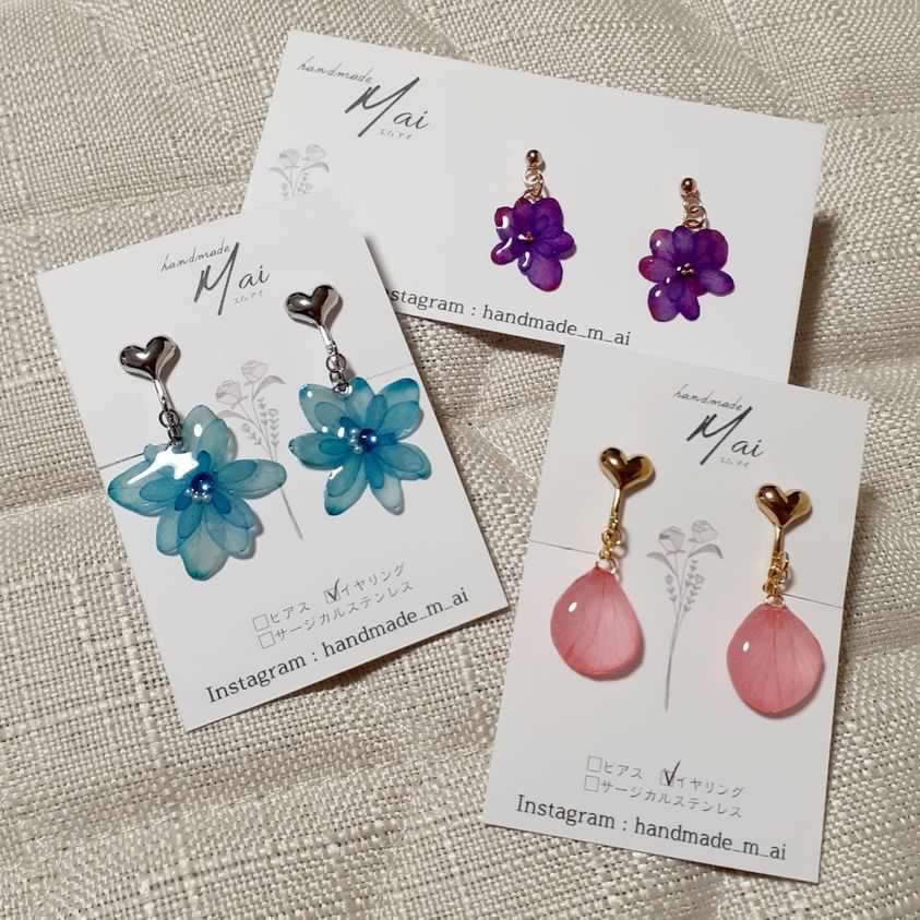 【紹介文】本物のお花を使ったレジンアクセサリーを作っています。