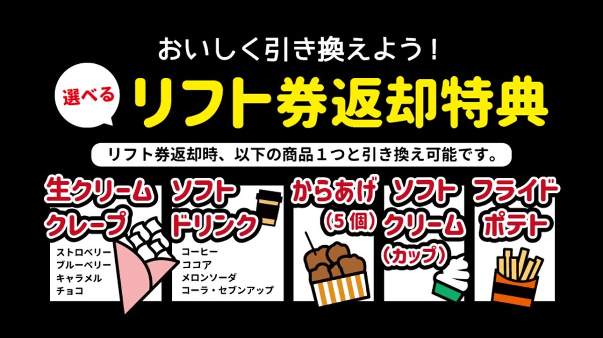 さらにこちらでは、リフト券購入時にお預かりした保証金500円を現金でお返しする代わりに・・・美味しい商品と引き換えられてとってもお得!詳しくはコチラから!