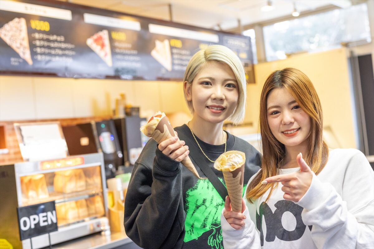 インフォメーションセンター2階で15時から営業している「CREPE SHOP」では、あま~いクレープを販売!帰りのバスを待つ間に糖分チャージしてください!クレープ以外にも、アイスやソーダフロート、ポテトや唐揚げも販売しています。