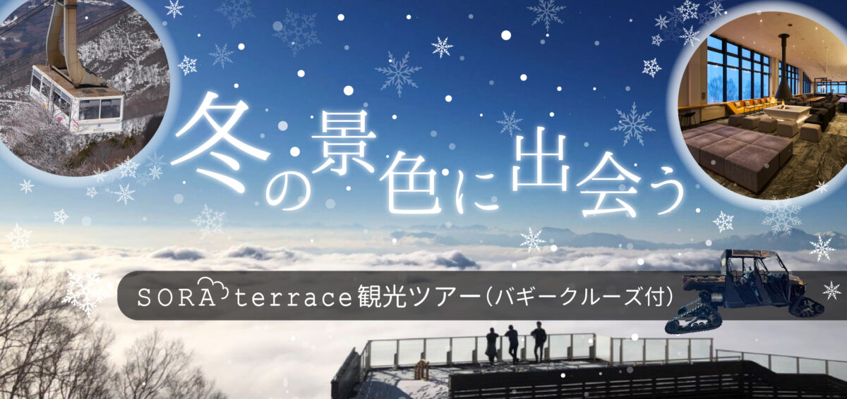 スキー・スノーボードをしなくても、『雪山バギークルーズ付きSORA terrace 観光』を利用すれば、冬の絶景を楽しめます♪