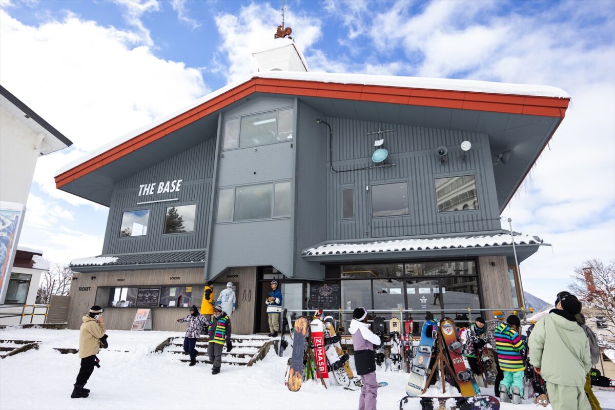 センターハウス「THE BASE」には、チケットカウンターやスクール受付、お手洗い、飲食店が入っています。