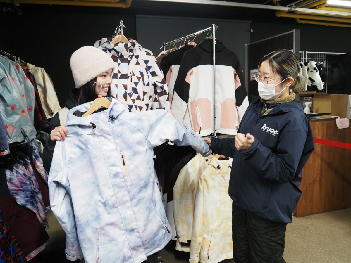 今シーズンから最新のお洒落なデザインを取り揃えた「スノボウェア無料貸出」サービスを実施しています!多彩なカラーバリエーションと幅広いサイズを取り揃え、自分のサイズや好みに合ったウェアを選べます!