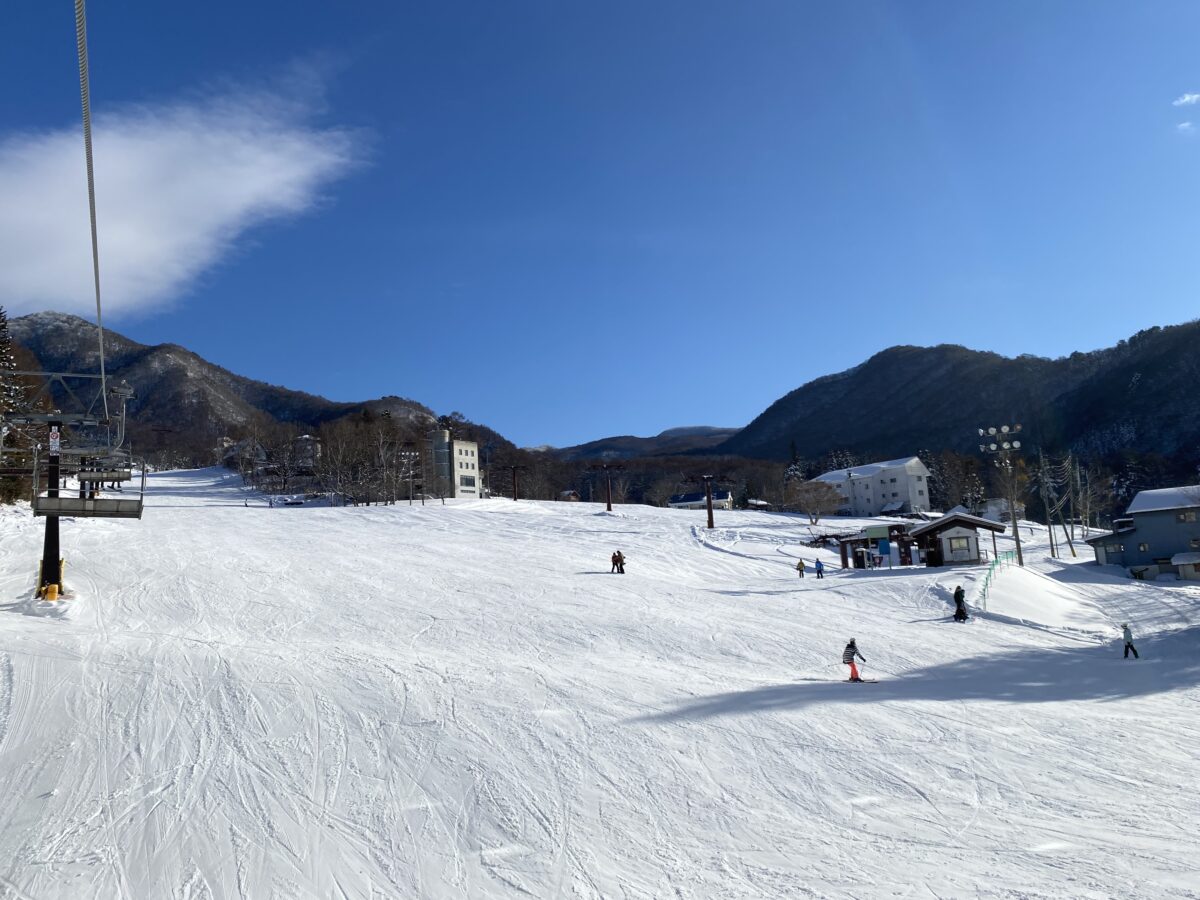 竜王スキーパークのメインゲレンデや竜王山を一望