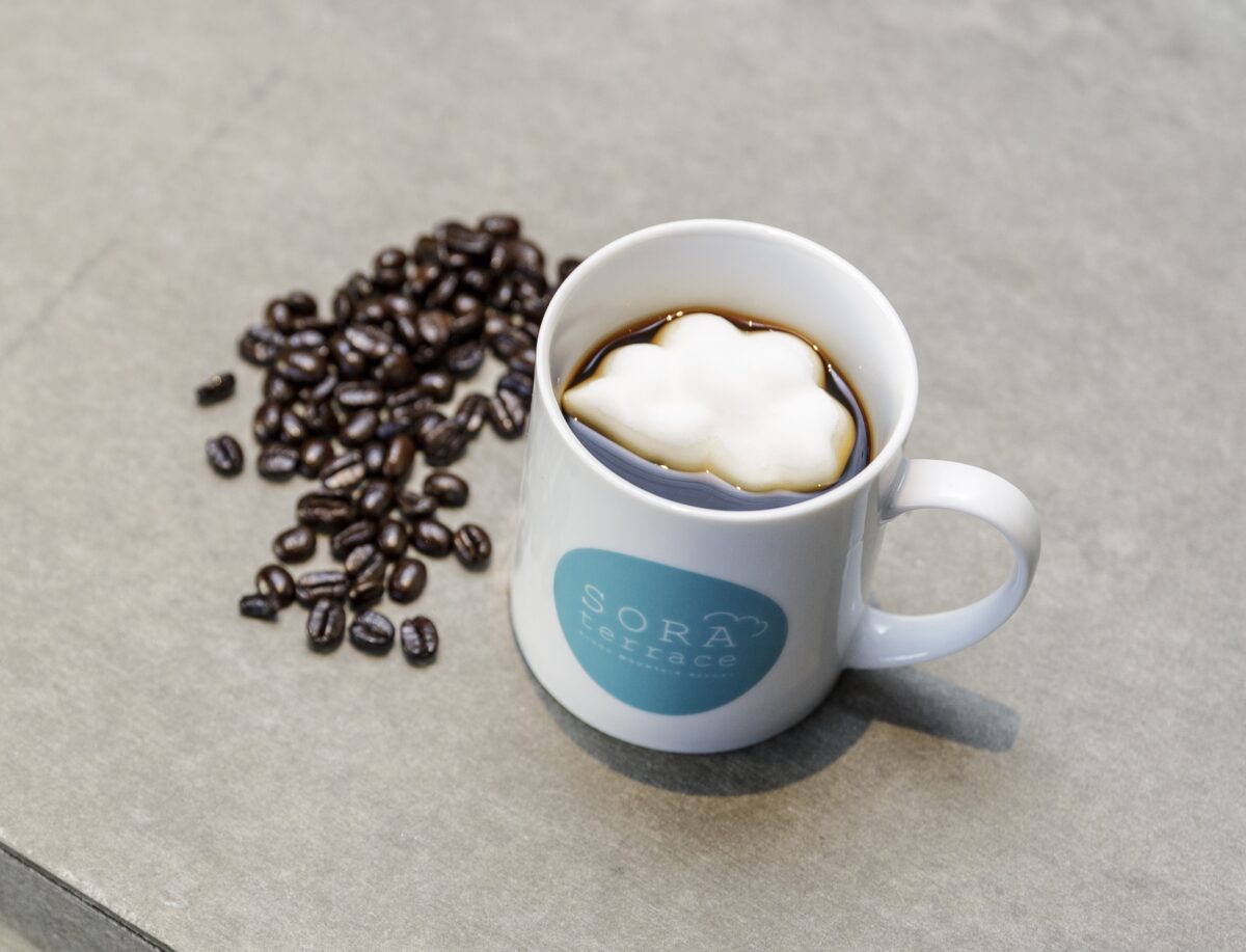SORA terrace cafeのオリジナルブレンド珈琲に、雲形のマシュマロを浮かべた『SORA珈琲』。味が美味しいのは勿論のこと、写真映えもバッチリ。マシュマロだけでも売っているので、ココアやカフェラテにのせても美味しいです!