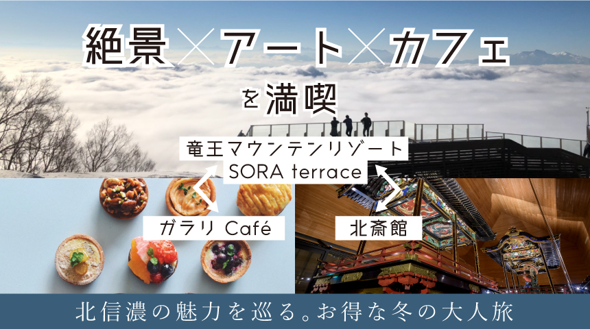 また、北斎館・ガラリCaféの対象チケット・レシートを竜王マウンテンリゾート「雪山バギークルーズ付きSORA terrace 観光」のチケット窓口に提示いただくことにより、1 回限りのご優待価格にてご利用いただけます。