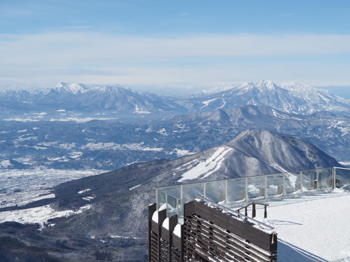 標高1770mの急斜面に建てられたSORA terraceから、長野の雄大な自然が作る美しい雪景色や時には日本海までの絶景を眺めることができます。