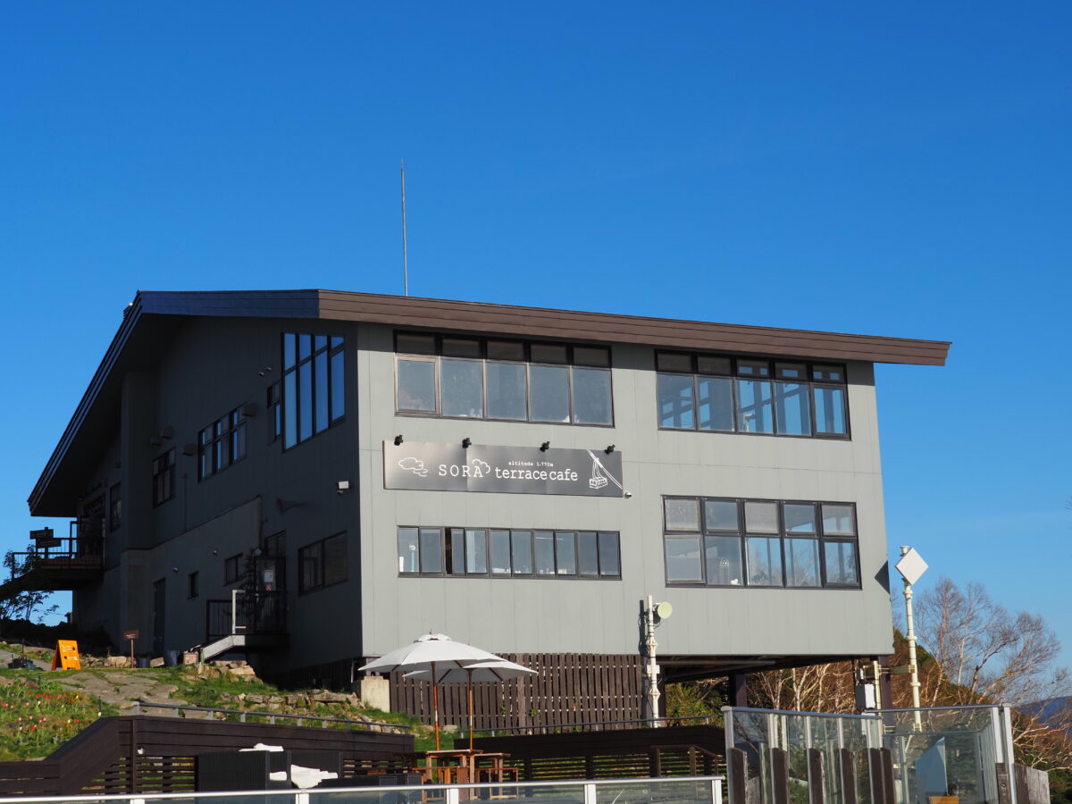 海拔1770m的SORA terrace,以其壯觀的景色聞名。可以眺望長野市、中野市、飯山市、木島平村的美景。如果天氣條件允許的話,說不定還能看到夢幻般的雲海!