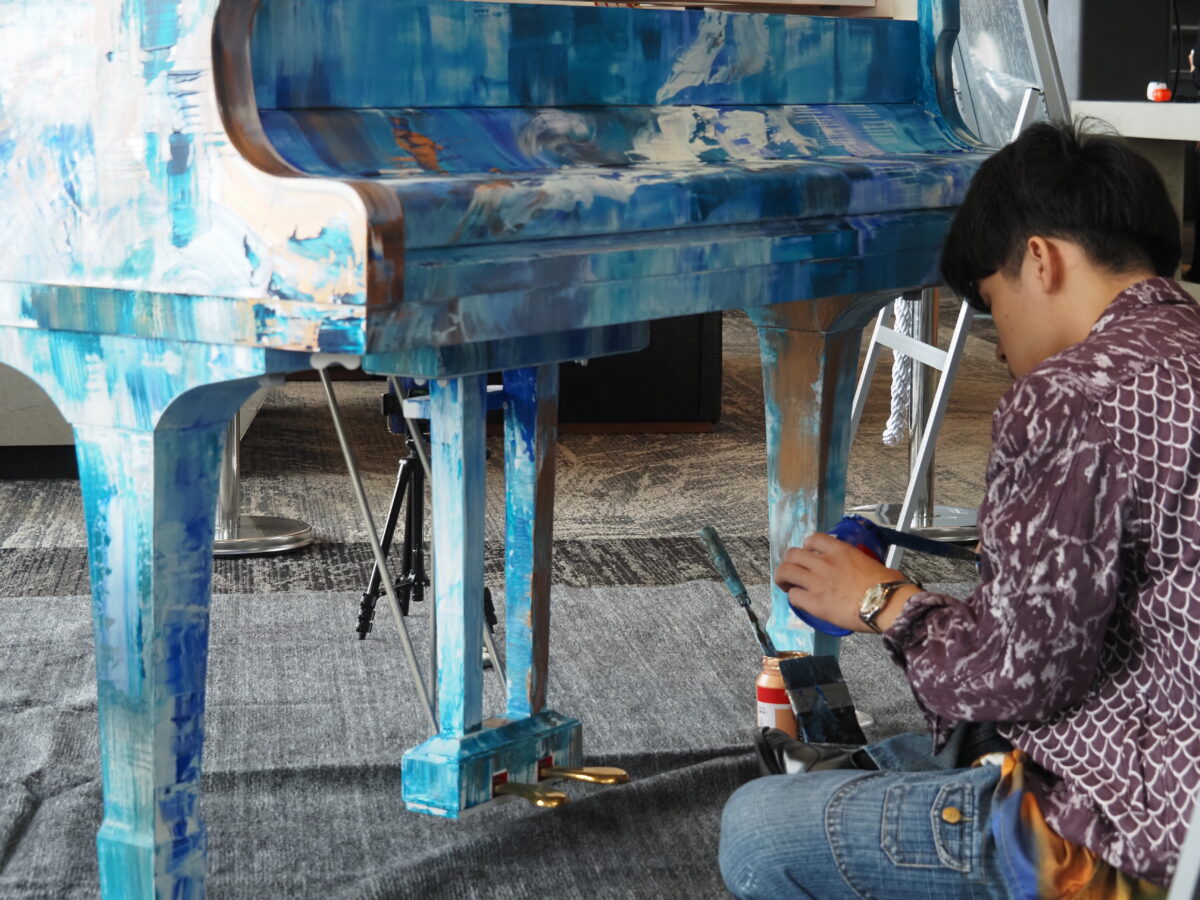 ピアノの足と椅子の足まで、素敵な絵を描いていただきました♪