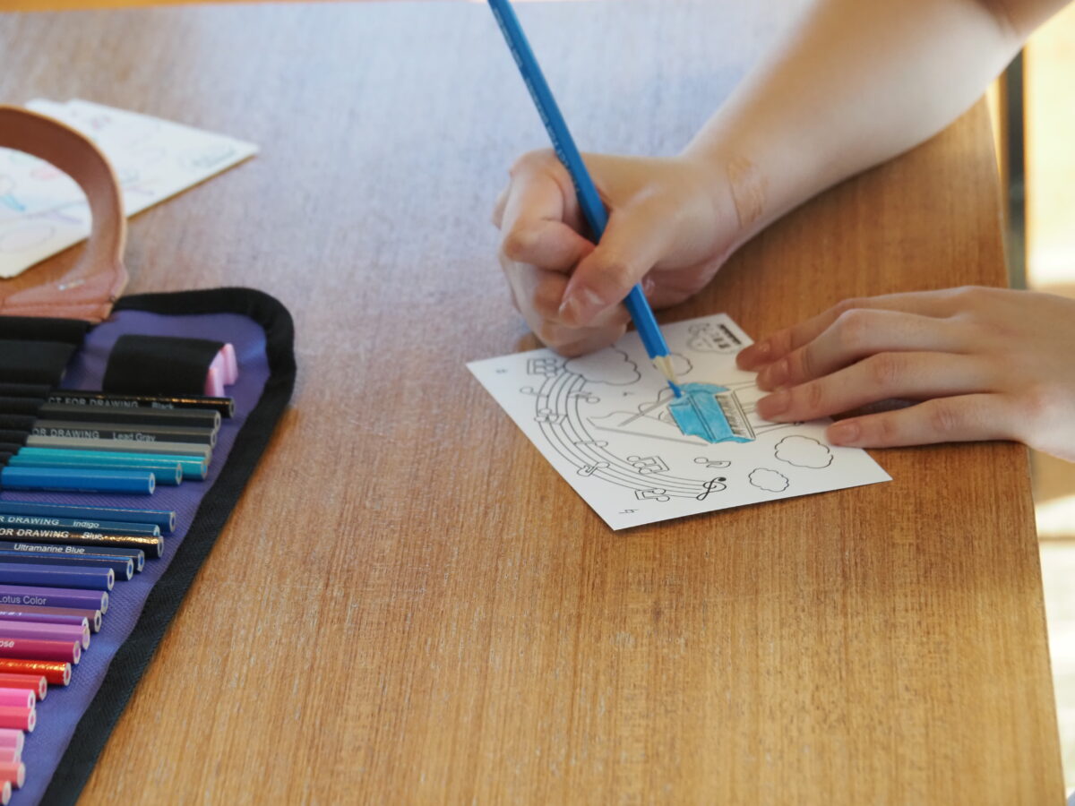 イベント開催中、オリジナル「雲海ピアノ」を描いていただける、塗り絵ワークショップを開催!子ども~大人の大勢の方に楽しんでいただきました♪