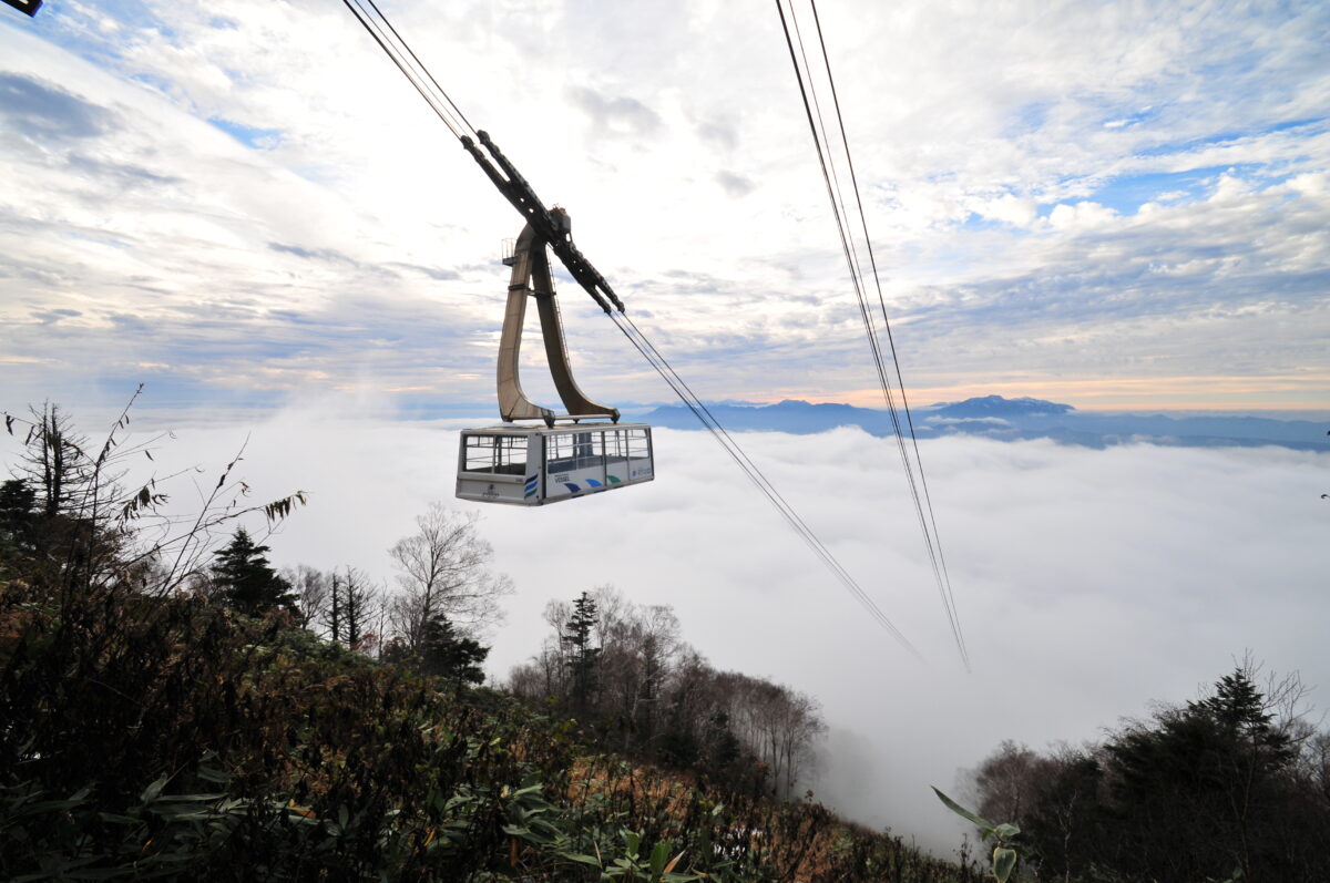世界最大級166人乗りの竜王ロープウェイに乗って標高1,770mへ行くと、雲海&絶景のSORA terraceがあります。
