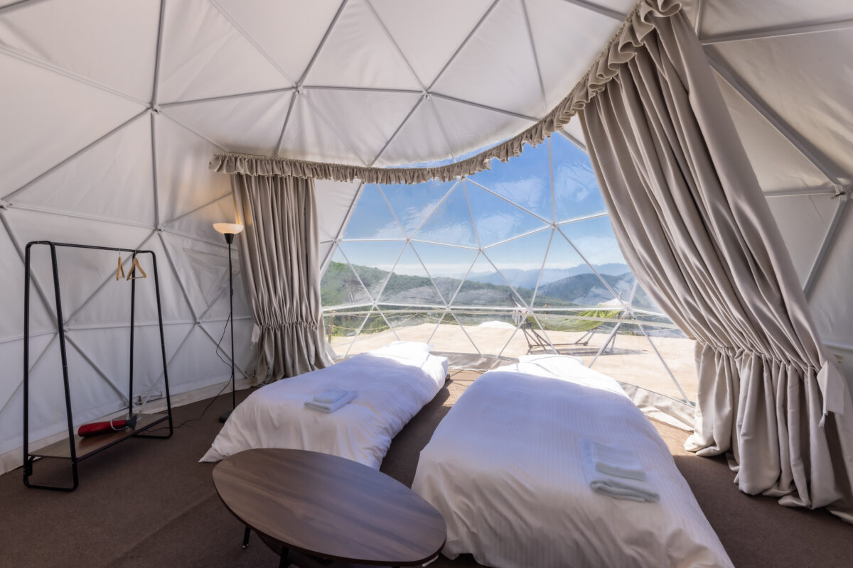 長野県最大級のグランピング施設でもあるSORA GLAMPING RESORTは、スイート仕様の雲海キャビンをはじめとした人気のドームテント、合わせて15棟あります。
