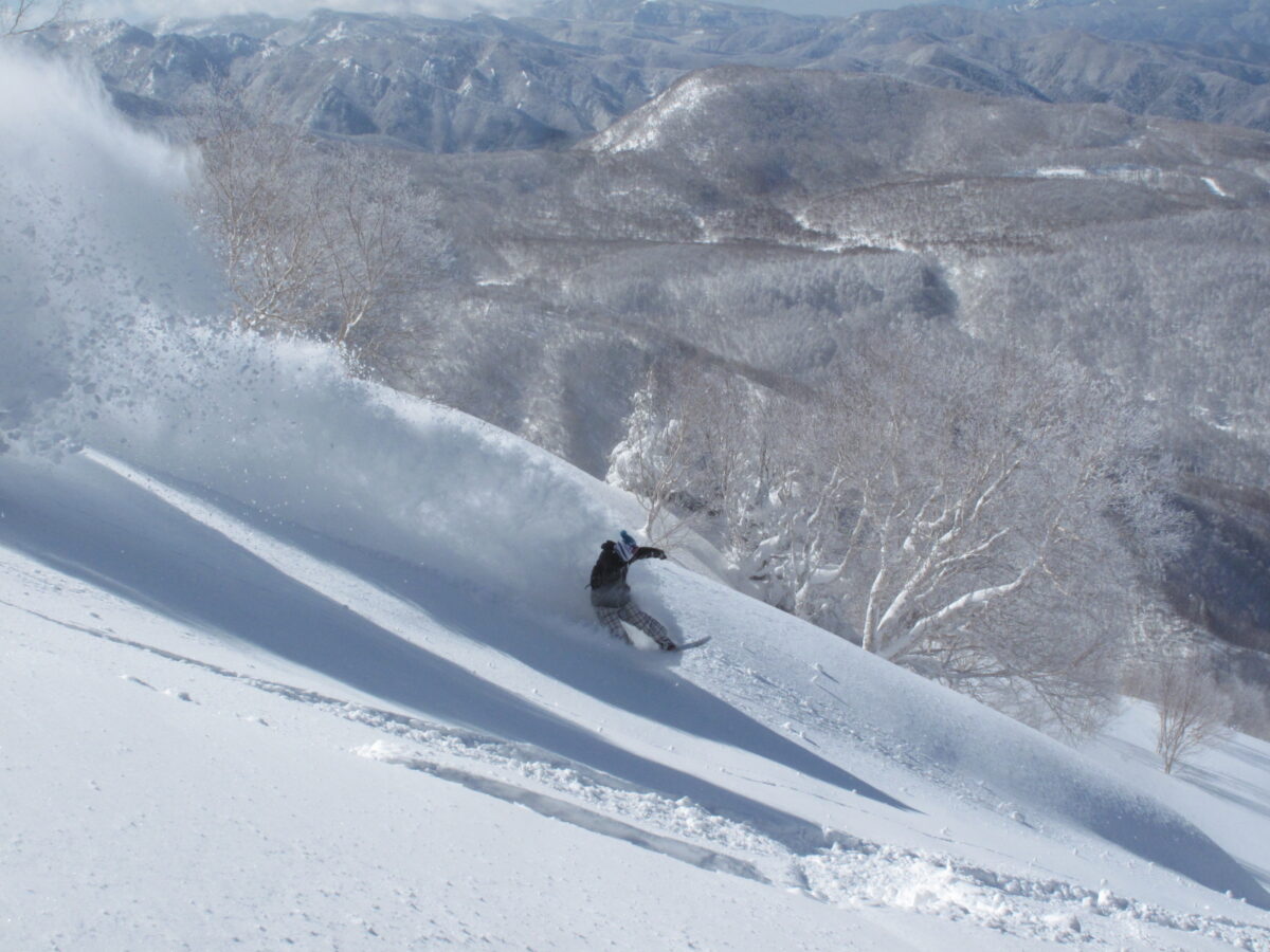 全国のパウダーフリークが、”当てれば必ず大満足”する、竜王の名物コース「木落し」は最大斜度が36度、沢地形を超ロングランで楽しめます!そしてなんと山々を見渡せる超絶景!一度滑ればまた滑りたくなること間違いなし!