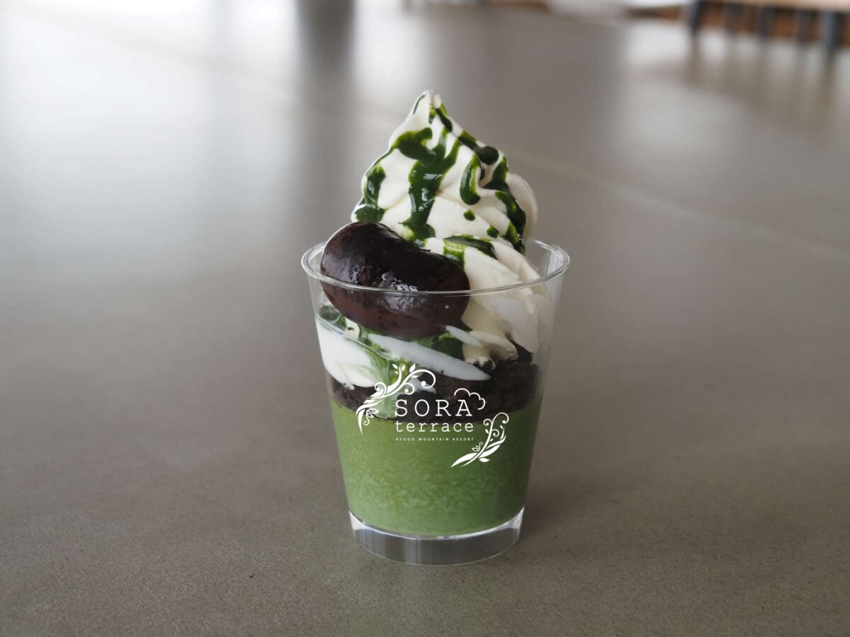 国産ソフトクリームを使った「豆の木抹茶ソフト」