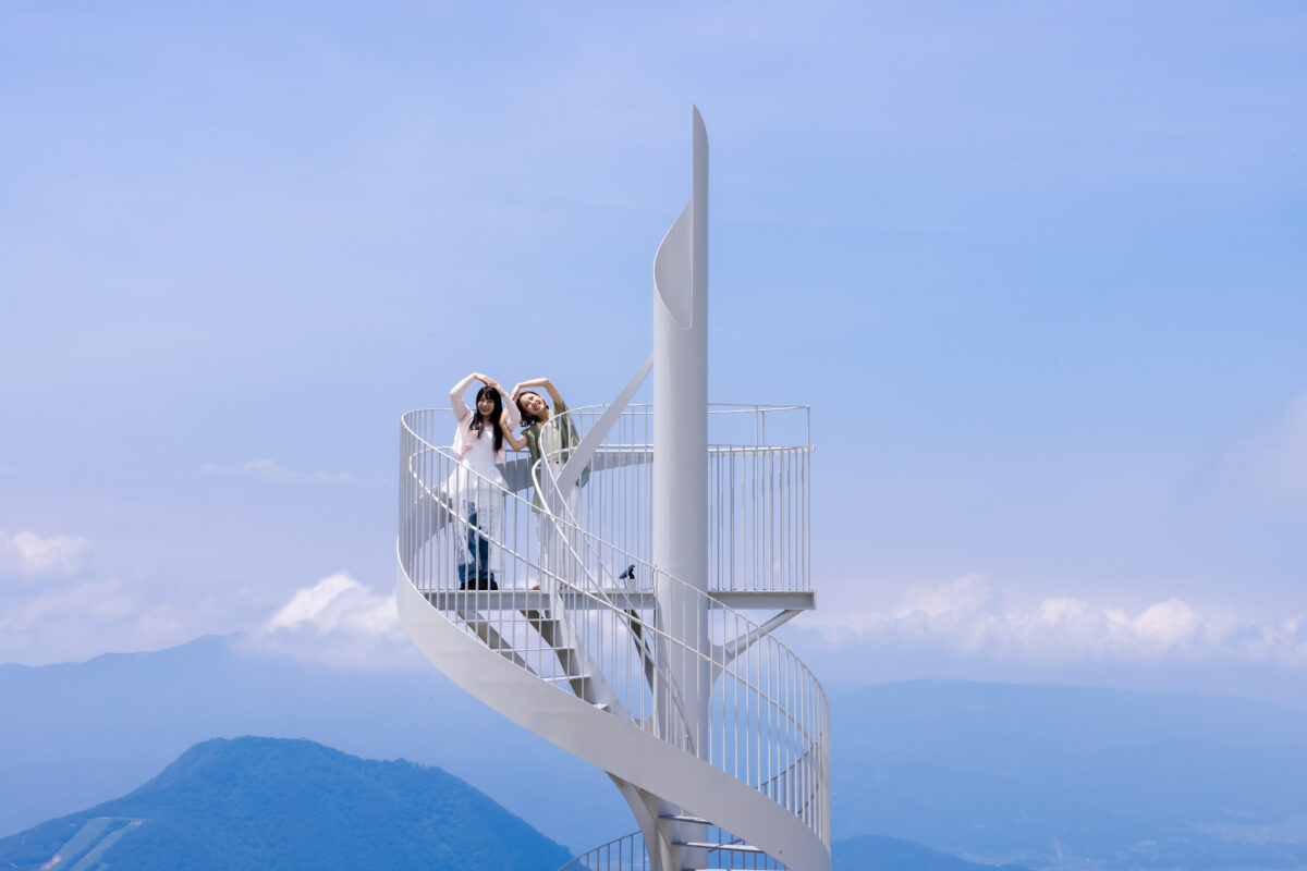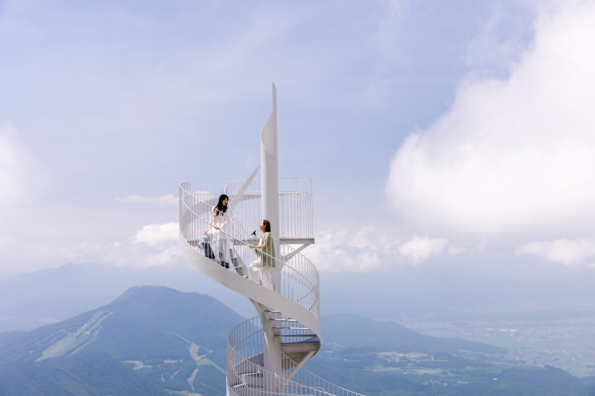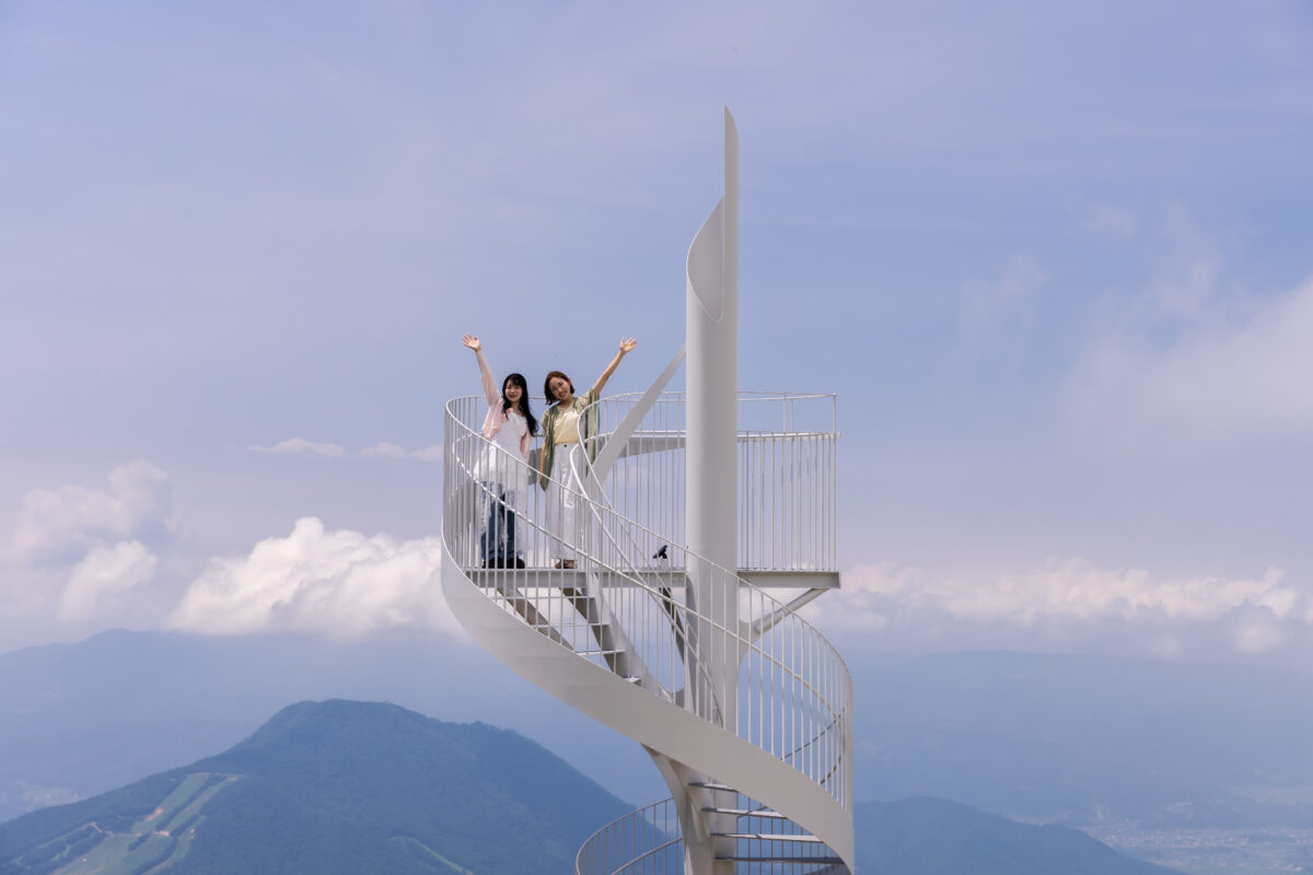 みんなで螺旋階段に並ぶ写真や雲を抜けた景色を背景に集合写真など、竜王マウンテンリゾート SORA terraceに来た旅の思い出にオススメです。
