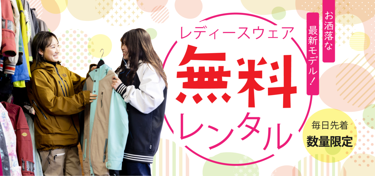 お洒落なウェアでスノボデビューを飾ろう!女性限定スノボウェア無料貸出