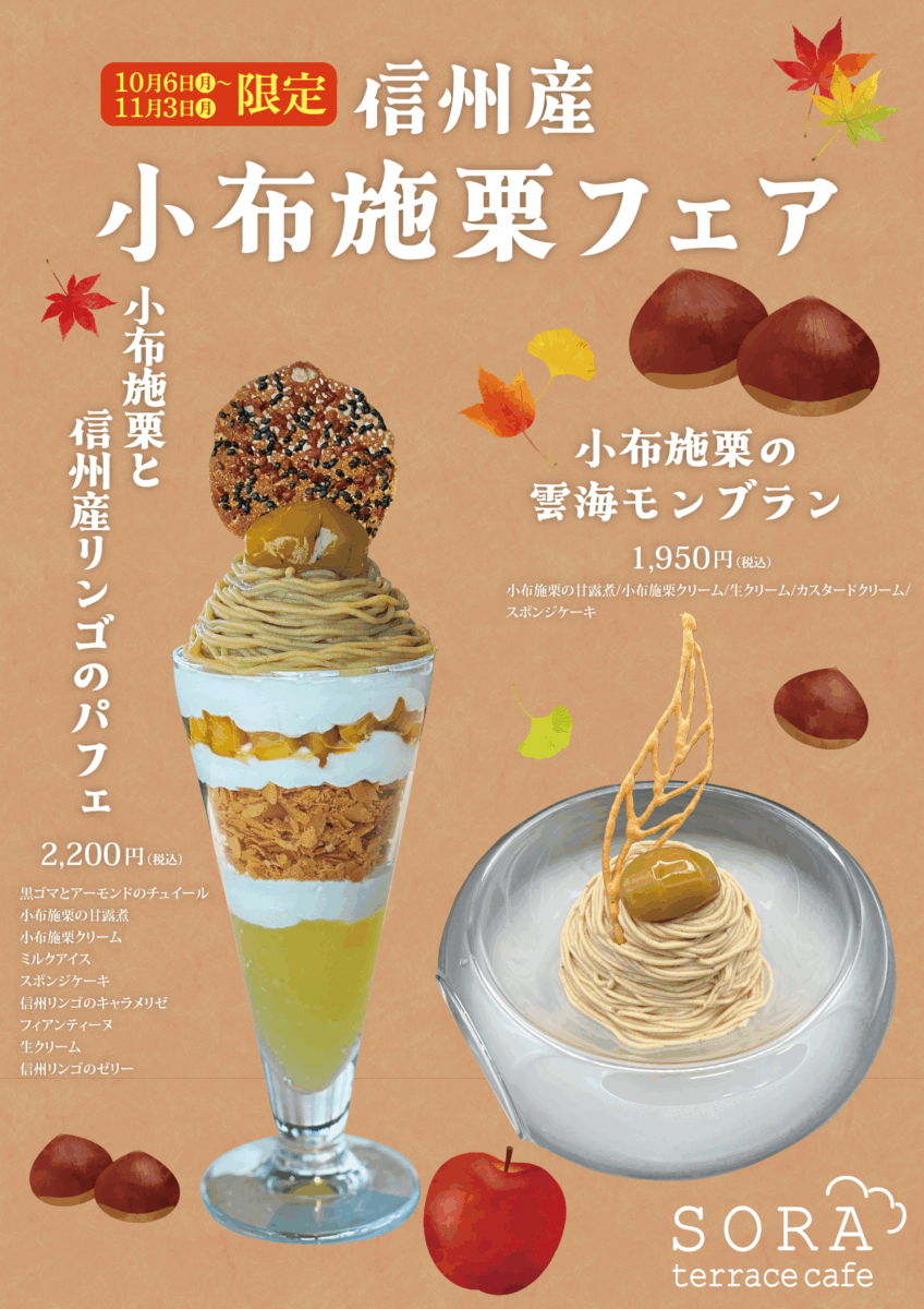 小布施栗をたっぷり使った秋の味覚を、絶景と一緒にお楽しみください☁️🍁