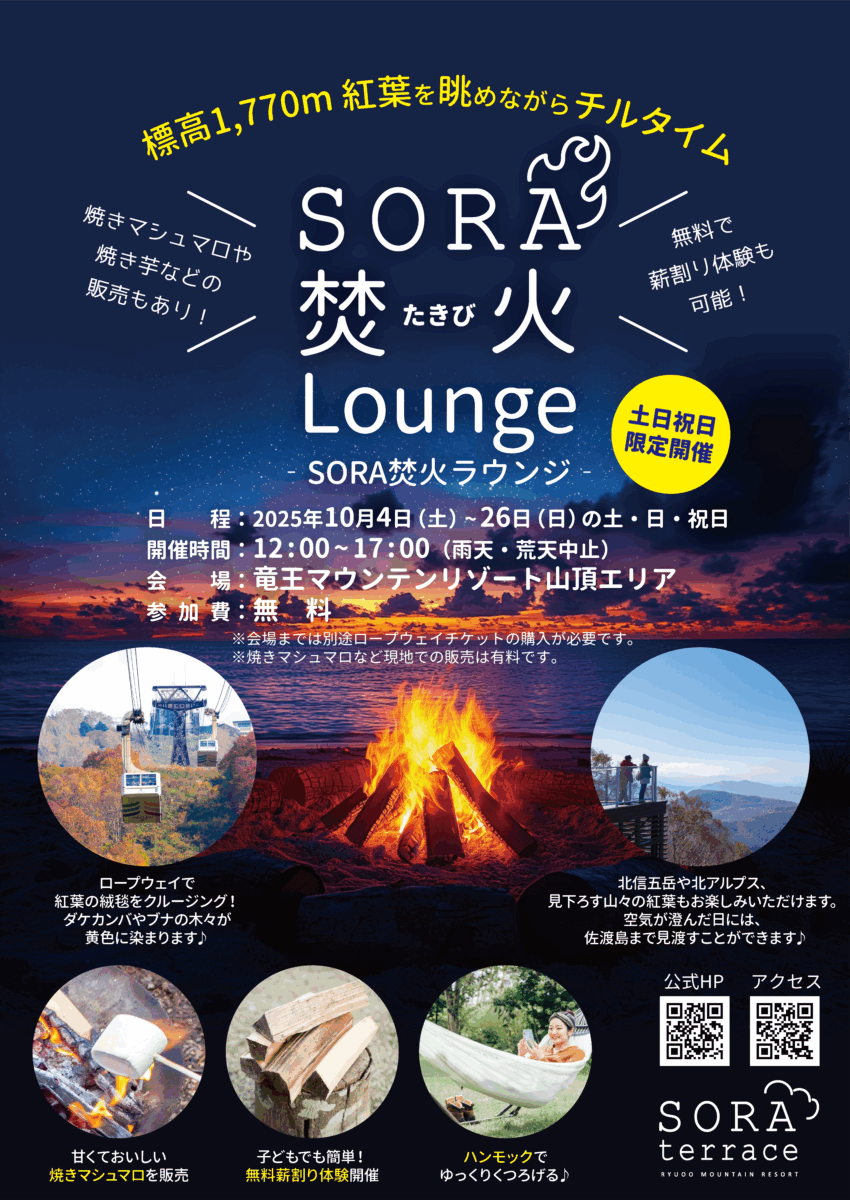 10月の土日祝日限定で焚き火イベントを開催いたします🔥