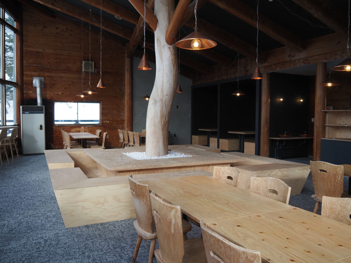 信州産ブランド米を使用したおにぎりや信州オレイン豚と信州味噌を使用した豚汁を専門とした飲食店が、今シーズンからオープン。施設内には囲炉裏スペースが設置され、自分で焼く「おやき体験」もできます。雪景色やゲレンデの様子を眺めながら、地元食材を使ったおにぎりをお召し上がりください。