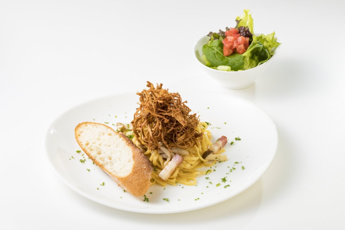 SORA terrace cafeでは9月から秋限定の信州産きのこのペペロンチーノをご用意。きのこの産地として有名な地元中野市で採れた新鮮なエリンギとえのきを使用。きのこの豊かな風味と香りをお楽しみください。
