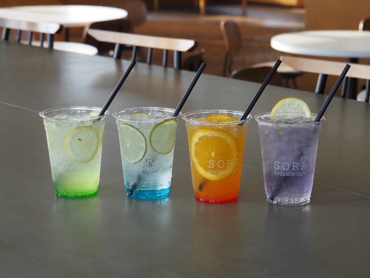 There are 4 types of 'Sky Soda' and each one is inspired by the sky seen from 'Sora Terrace'.